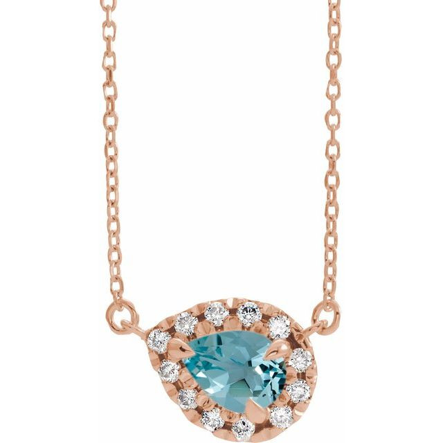 This beautiful 14 Karat Rose Gold 7x5 mm Pear Blue Zircon & 1/6 Carat Diamond 16 inch Necklace - Nice Pear Zircon Necklace is a timeless jewelry item made in the highest standards for Gemstone Fashion jewelry
