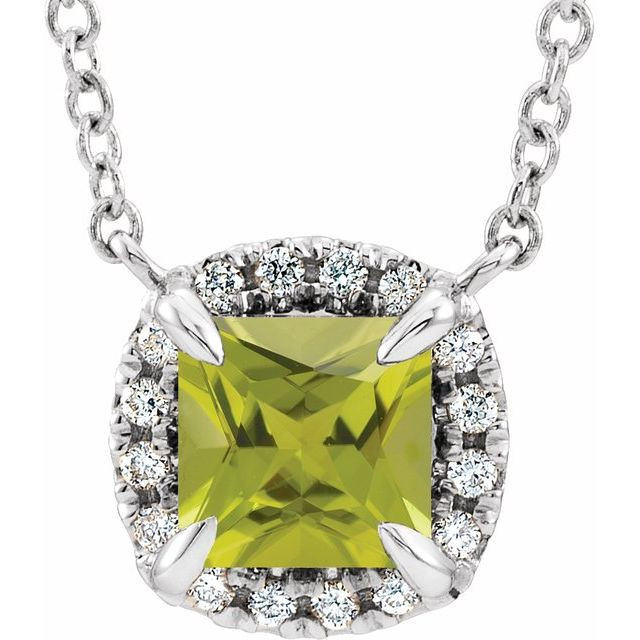 This beautiful Sterling Silver 3.5x3.5 mm Square Peridot & .05 Carat Diamond 18 inch Necklace - Eye-Catching Square Peridot Necklace is a timeless jewelry item made in the highest standards for Gemstone Fashion jewelry