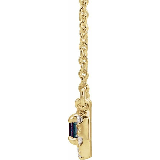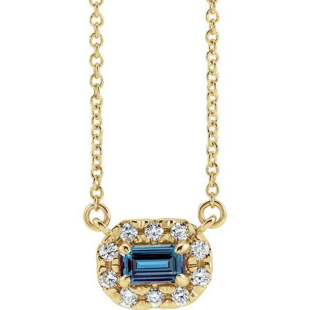 14 Karat Yellow Gold 5x3 mm Lab-Grown Alexandrite & 1/8 CTW Natural Diamond Halo-Style 18 inch Necklace Comes Set With
