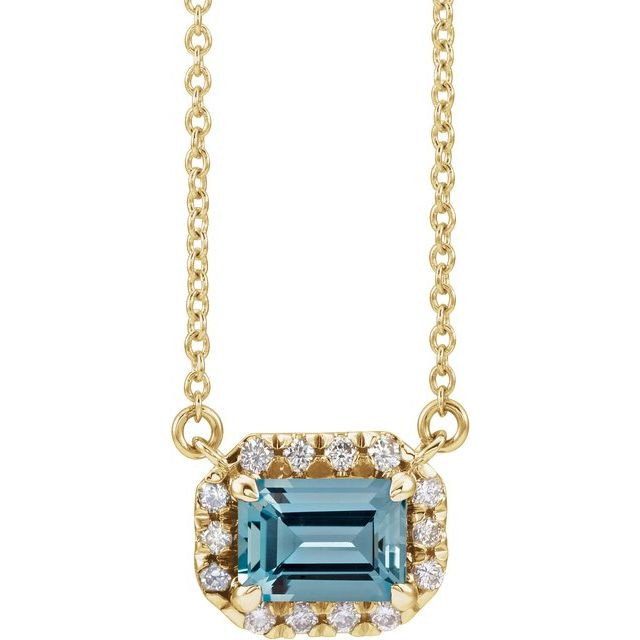 This beautiful 14 Karat Yellow Gold 6x4 mm Emerald Aquamarine & 1/5 Carat Diamond 16 inch Necklace - Classy Emerald/Octagon Aquamarine Necklace is a timeless jewelry item made in the highest standards for Gemstone Fashion jewelry