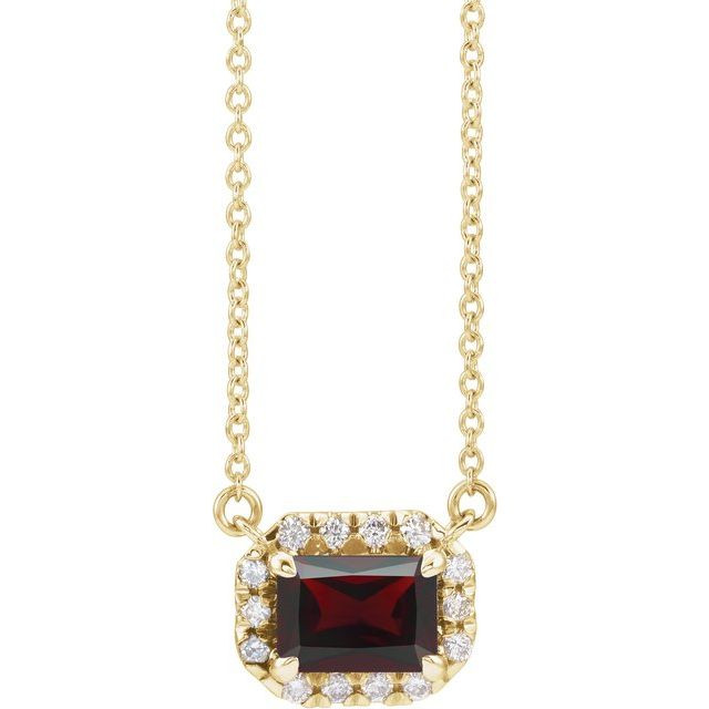 This beautiful 14 Karat Yellow Gold 6x4 mm Emerald Mozambique Garnet & 1/5 Carat Diamond 18 inch Necklace - Splendid Emerald/Octagon Garnet Necklace is a timeless jewelry item made in the highest standards for Gemstone Fashion jewelry