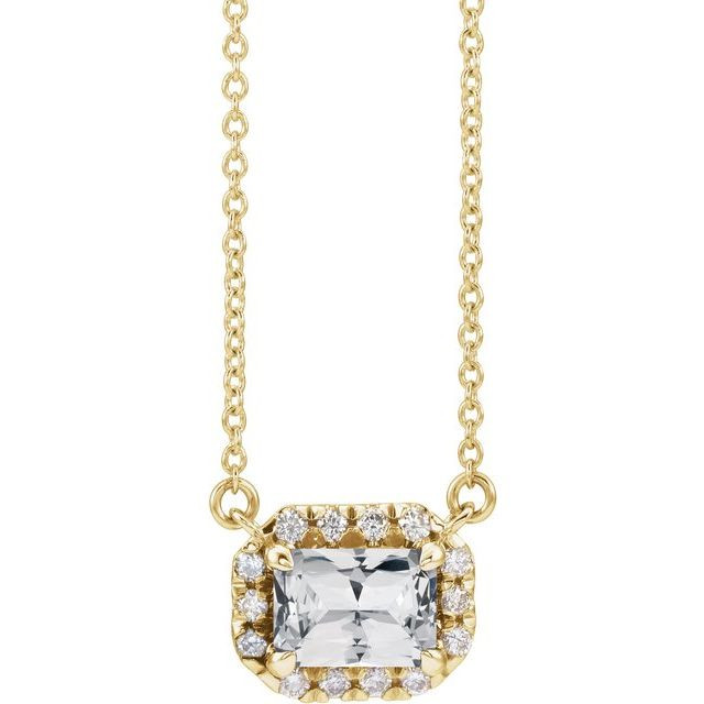 This beautiful 14 Karat Yellow Gold 7x5 mm Emerald White Sapphire & 1/5 Carat Diamond 18 inch Necklace - Lovely Emerald/Octagon Sapphire Necklace is a timeless jewelry item made in the highest standards for Gemstone Fashion jewelry