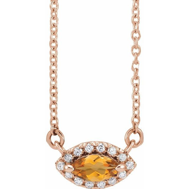 This beautiful 14 Karat Rose Gold Citrine & .05 Carat Diamond Halo-Style 18 inch Necklace - Nice Marquise Citrine Necklace is a timeless jewelry item made in the highest standards for Gemstone Fashion jewelry