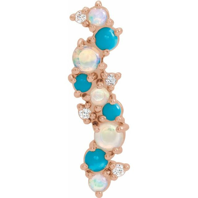 14 Karat Rose Gold Ethiopian Opal Turquoise & .03 Total Carat Weight Diamond Scatted Pendant