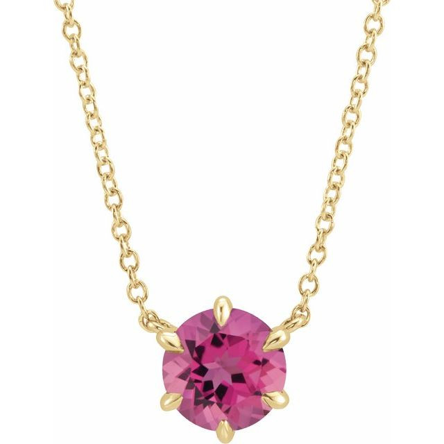 Pink Tourmaline Necklace in 14 Karat Yellow Gold Pink Tourmaline Solitaire 18 inch Necklace