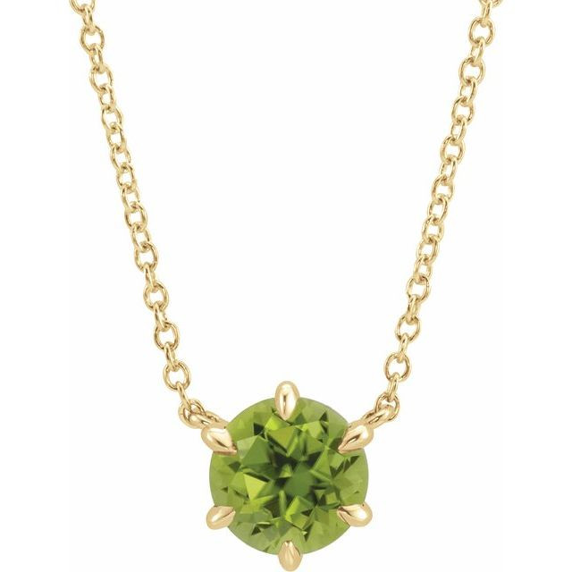 14 Karat Yellow Gold Natural Peridot Solitaire 16 inch Necklace Comes Set With
