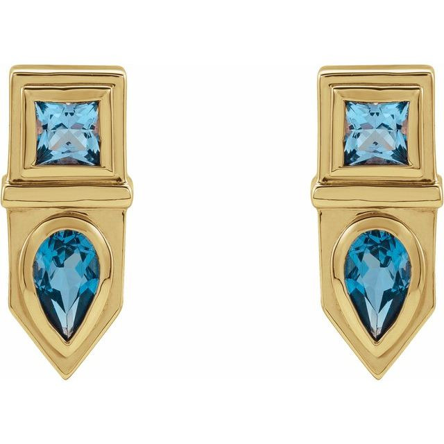 14 Karat Yellow Gold Natural Blue Multi-Gemstone Geometric Bar Earrings Comes Set With