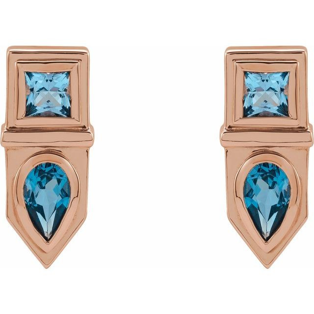 14 Karat Rose Gold Natural Blue Multi-Gemstone Geometric Bar Earrings Comes Set With