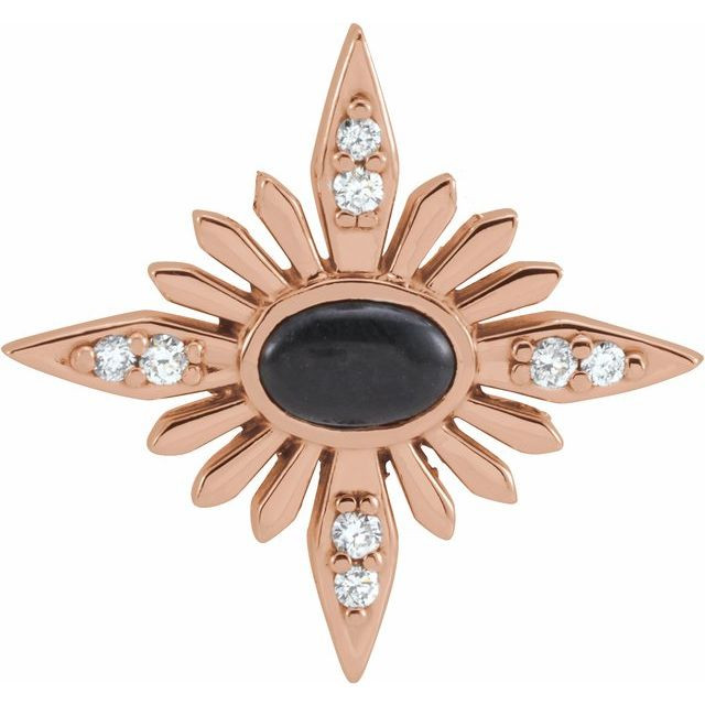 Black Onyx Gem in 14 Karat Rose Gold Onyx and .08 Carat Diamond Celestial Pendant
