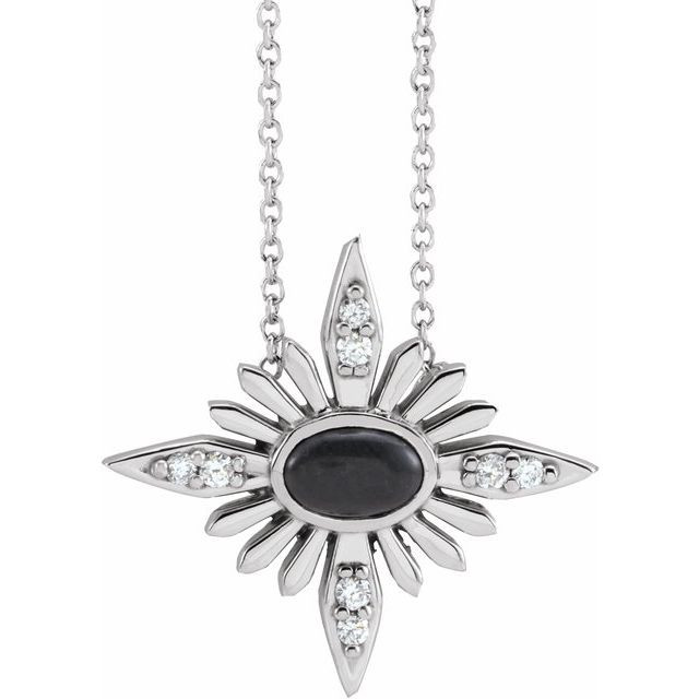 Black Onyx Necklace in 14 Karat White Gold Onyx and .08 Carat Diamond Celestial 16 inch Necklace