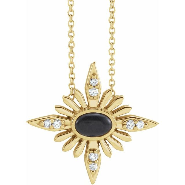 Black Onyx Necklace in 14 Karat Yellow Gold Onyx and .08 Carat Diamond Celestial 16 inch Necklace