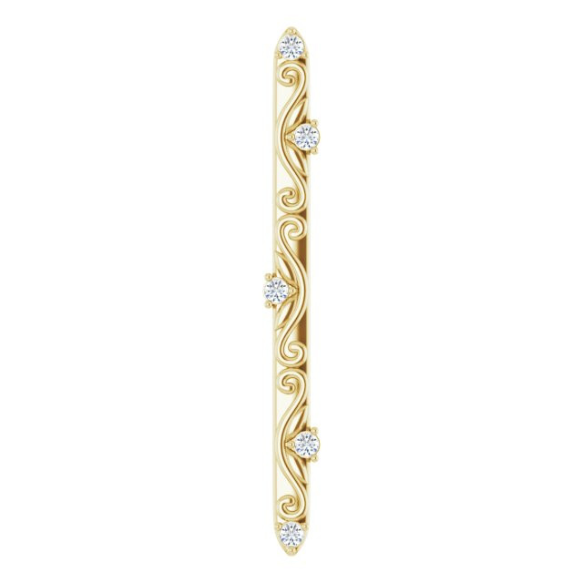 White Diamond in 14 Karat Yellow Gold .07 Carat Diamond Vintage Inspired Vertical Bar Pendant