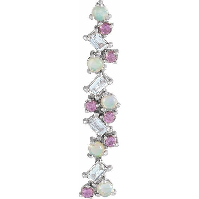 Multi Gemstone Pendant in 14 Karat White Gold Ethiopian Opal, Pink Sapphire and 0.12 Carat Diamond Scattered Bar Pendant
