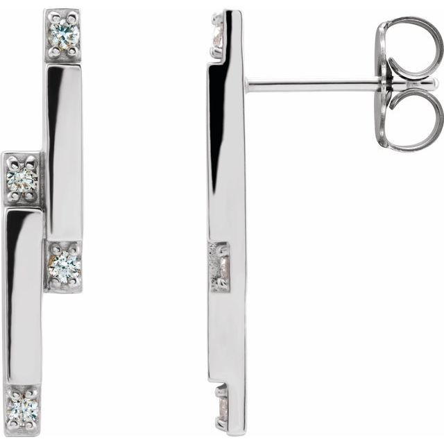 14 Karat White Gold 0.10 Carat Diamond Bar Earrings