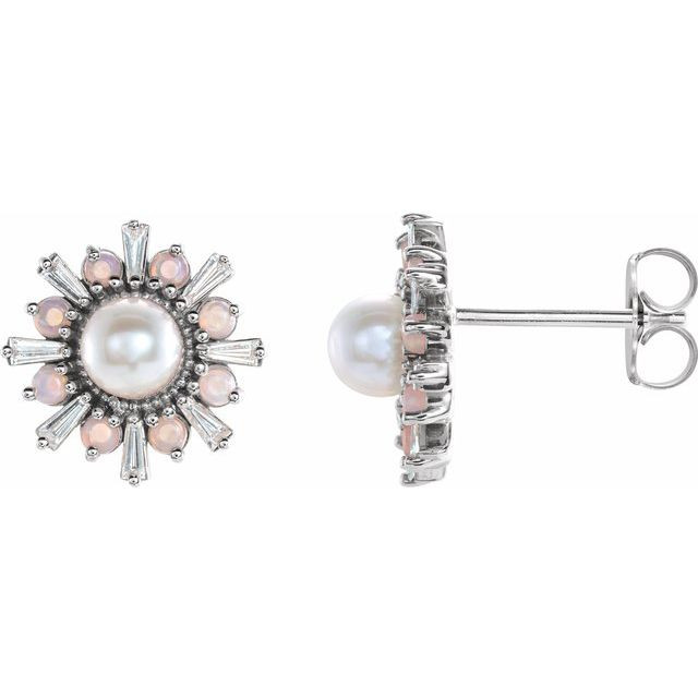 14 Karat White Gold Akoya Pearl, White Opal and 0.16 Carat Diamond Earrings