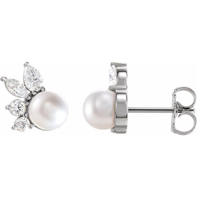 14 Karat White Gold Akoya Cultured Pearl and .05 Carat Diamond Earrings