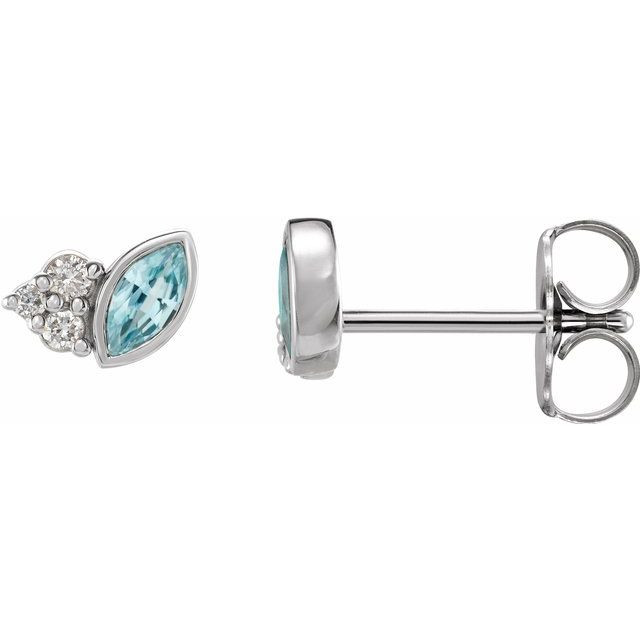 Platinum Genuine Blue Zircon and .05 Carat Diamond Earrings