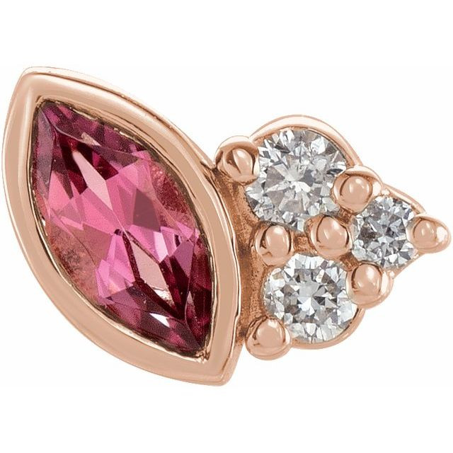 14 Karat Rose Gold Pink Tourmaline and .03 Carat Diamond Left Earring
