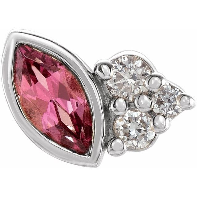 Sterling Silver Natural Pink Tourmaline & .03 Carat Natural Diamond Left Earring Comes Set With
