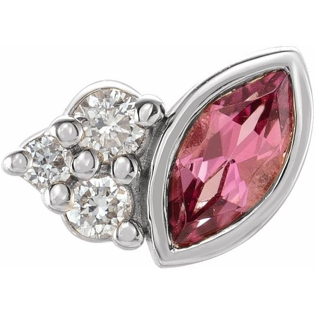 Sterling Silver Pink Tourmaline & .03 Total Carat Weight Diamond Right Earring