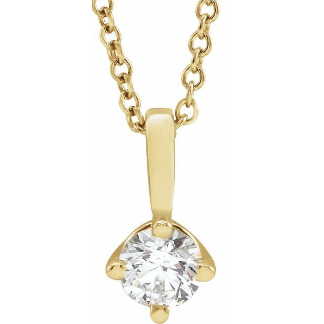 White Diamond Necklace in 14 Karat Yellow Gold 0.25 Carat Diamond Solitaire 16 inch Necklace