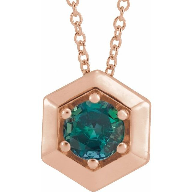 14 Karat Rose Gold Lab Grown Alexandrite Geometric 16 inch Necklace Comes Set With