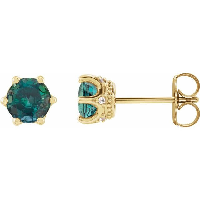 14 Karat Yellow Gold 4 mm Natural Emerald & .03 Carat Natural Diamond Crown Earrings Comes Set With