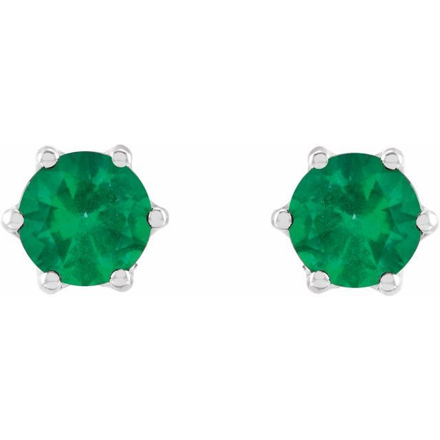 14 Karat White Gold 4 mm Natural Emerald and .03 Carat Natural Diamond Crown Earrings