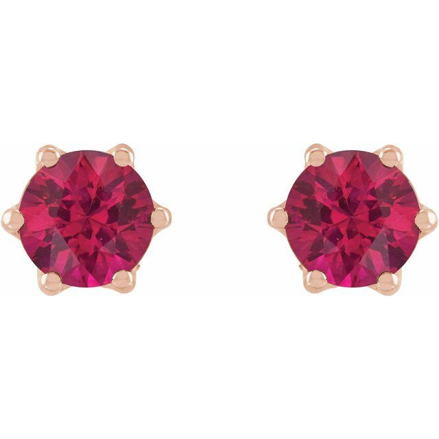 14 Karat Rose Gold 4 mm Natural Ruby & .03 Carat Natural Diamond Crown Earrings Comes Set With