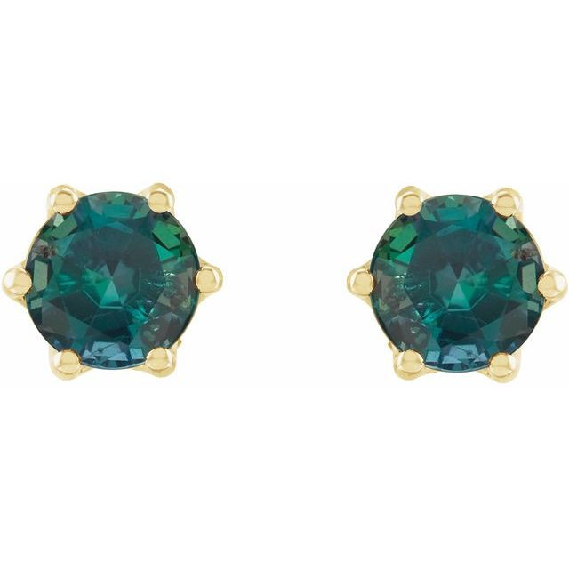 14 Karat Yellow Gold 6 mm Lab-Grown Alexandrite & .03 Carat Natural Diamond Crown Earrings Comes Set With