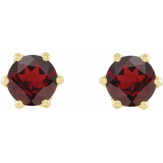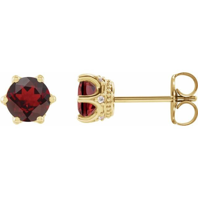 14 Karat Yellow Gold 6 mm Natural Mozambique Garnet & .03 Carat Natural Diamond Crown Earrings Comes Set With