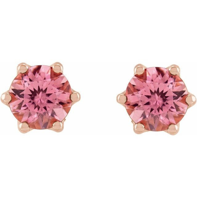 14 Karat Rose Gold 6 mm Natural Pink Tourmaline & .03 Carat Natural Diamond Crown Earrings Comes Set With