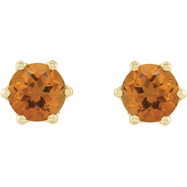 14 Karat Yellow Gold 5 mm Natural Citrine and .03 Carat Natural Diamond Crown Earrings