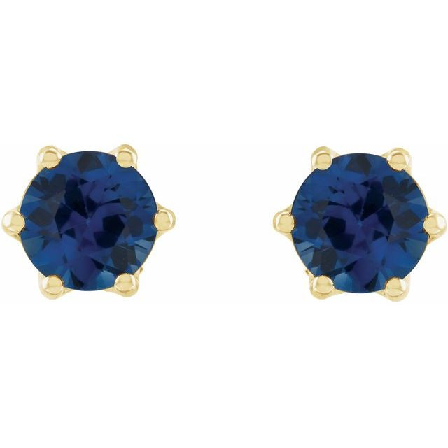 14 Karat Yellow Gold 5 mm Lab-Grown Blue Sapphire & .03 Carat Natural Diamond Crown Earrings Comes Set With