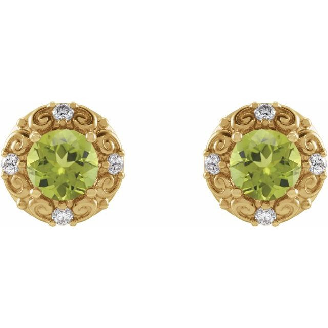14 Karat Yellow Gold 4 mm Natural Peridot & 0.10 Carat Natural Diamond Halo-Style Earrings Comes Set With