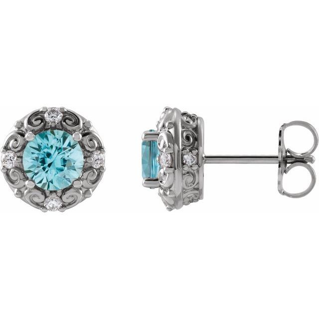 Sterling Silver 4 mm Natural Blue Zircon & 0.10 Carat Natural Diamond Halo-Style Earrings Comes Set With