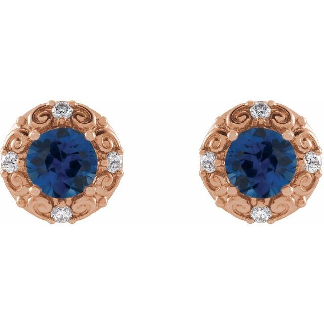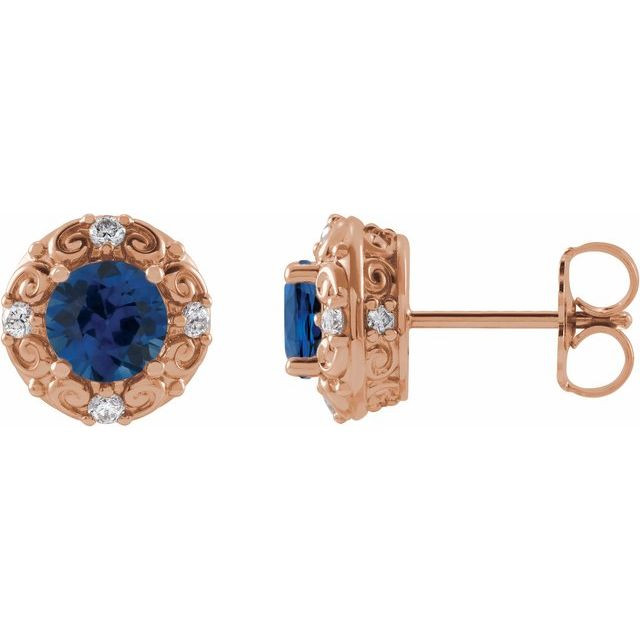 14 Karat Rose Gold 5 mm Natural Blue Sapphire & 0.16 Carat Natural Diamond Halo-Style Earrings Comes Set With