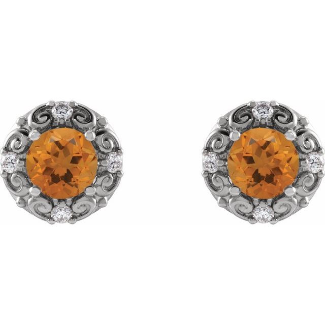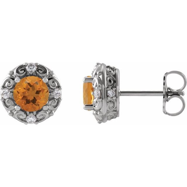 Sterling Silver 5 mm Natural Citrine & 0.16 Carat Natural Diamond Halo-Style Earrings Comes Set With