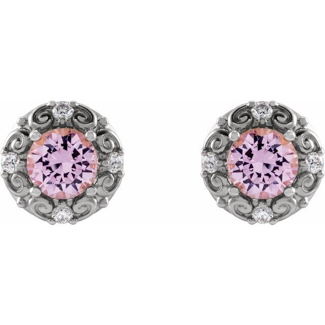 Platinum 5 mm Natural Pink Tourmaline & 0.16 Carat Natural Diamond Halo-Style Earrings Comes Set With