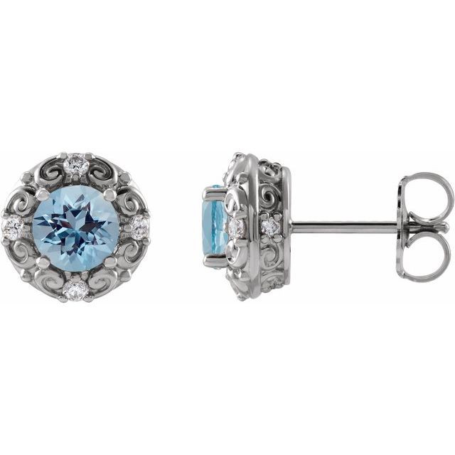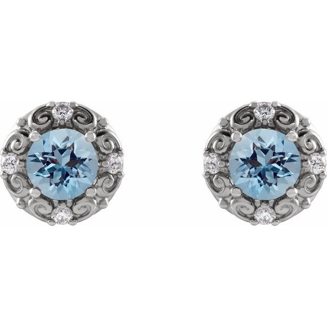 Sterling Silver 5 mm Natural Aquamarine & 0.16 Carat Natural Diamond Halo-Style Earrings Comes Set With