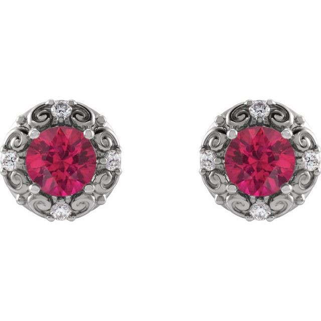 Sterling Silver 5 mm Natural Ruby & 0.16 Carat Natural Diamond Halo-Style Earrings Comes Set With