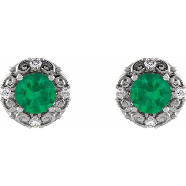 Platinum 5 mm Natural Emerald & 0.16 Carat Natural Diamond Halo-Style Earrings Comes Set With