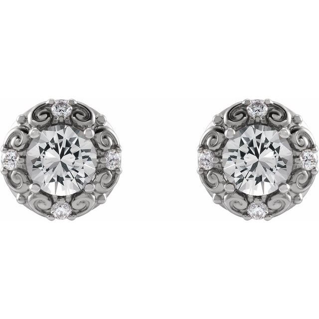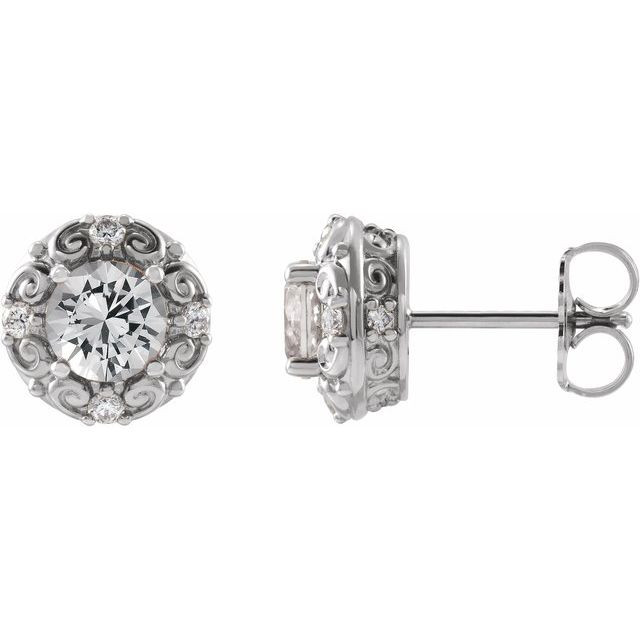 Platinum 5 mm Natural White Sapphire & 0.16 Carat Natural Diamond Halo-Style Earrings Comes Set With