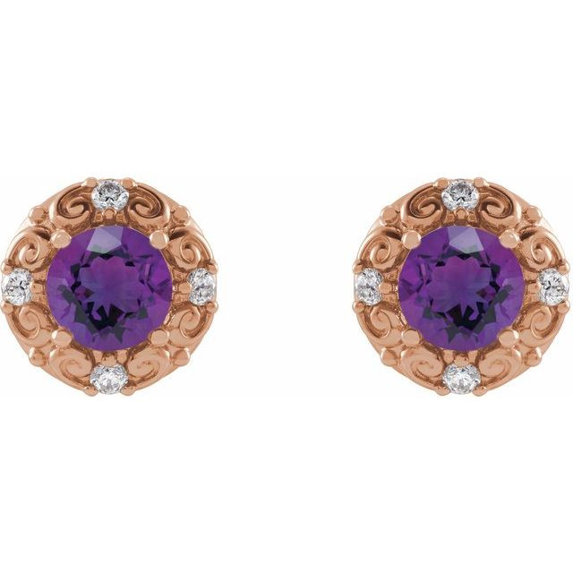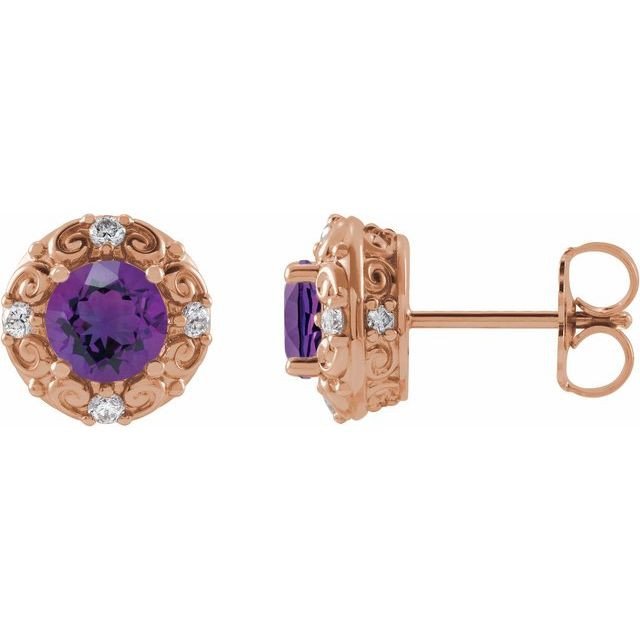 14 Karat Rose Gold 5 mm Natural Amethyst & 0.16 Carat Natural Diamond Halo-Style Earrings Comes Set With