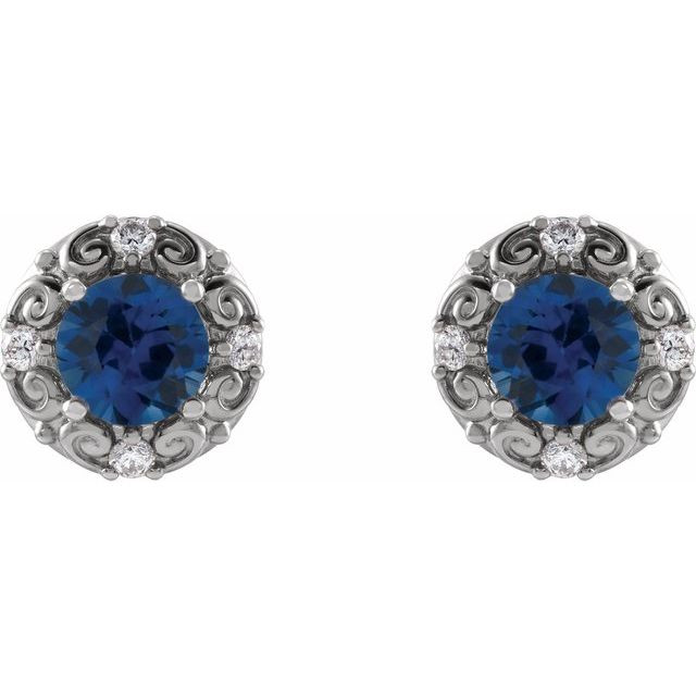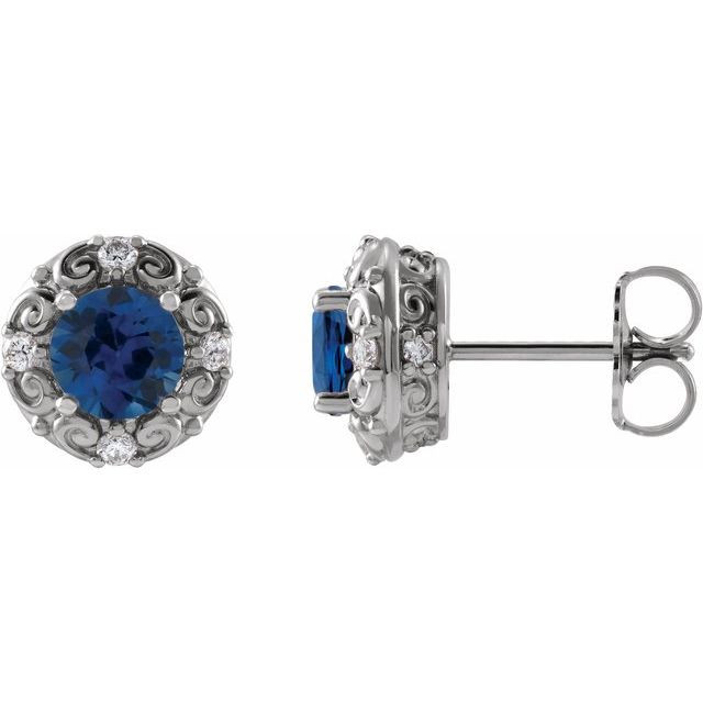 Sterling Silver 6 mm Natural Blue Sapphire & 0.25 Carat Natural Diamond Halo-Style Earrings Comes Set With