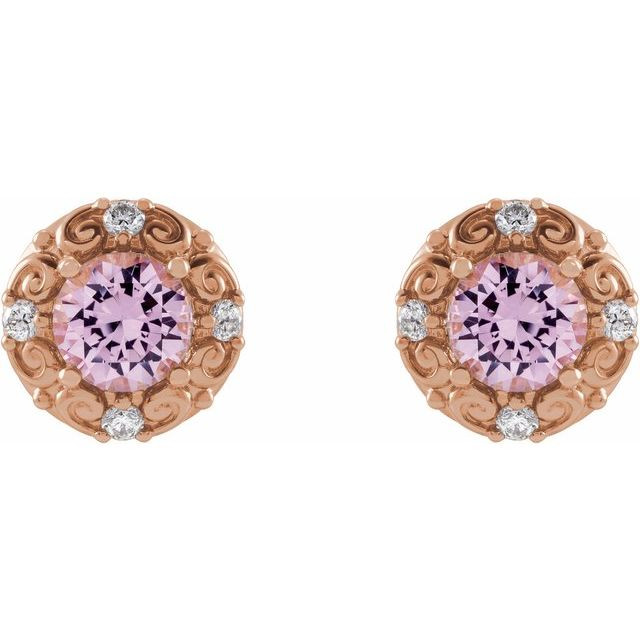 14 Karat Rose Gold 6 mm Natural Pink Tourmaline & 0.25 Carat Natural Diamond Halo-Style Earrings Comes Set With
