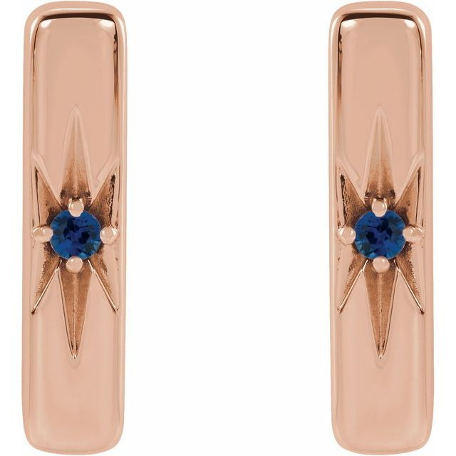 14 Karat Rose Gold Natural Blue Sapphire Starburst Bar Earrings