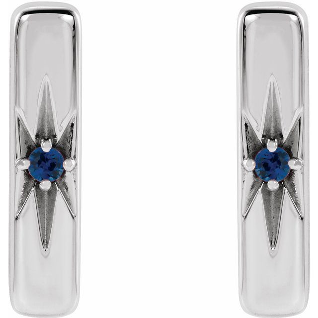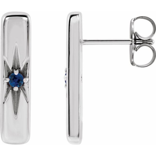 Platinum Natural Blue Sapphire Starburst Bar Earrings Comes Set With