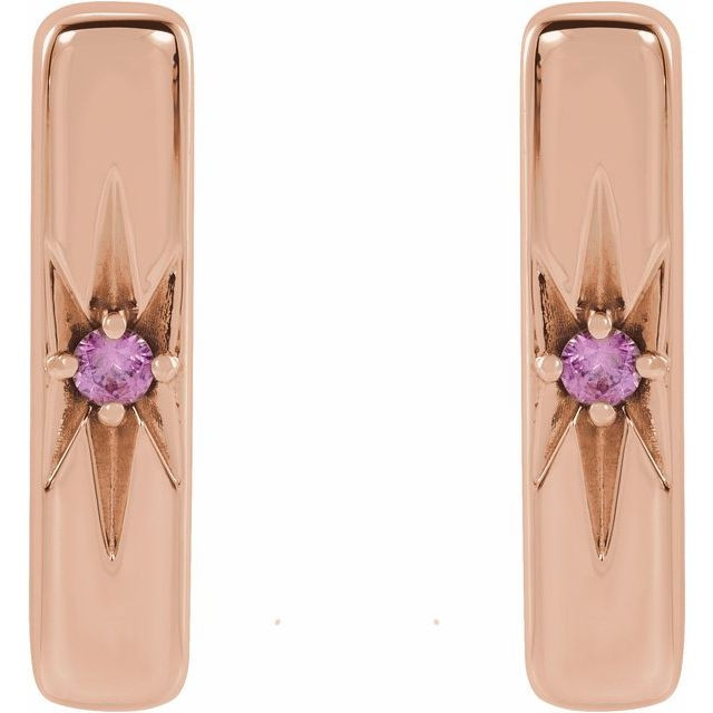 14 Karat Rose Gold Natural Pink Sapphire Starburst Bar Earrings Comes Set With