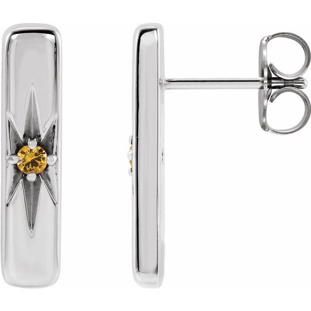 Platinum Natural Yellow Sapphire Starburst Bar Earrings Comes Set With